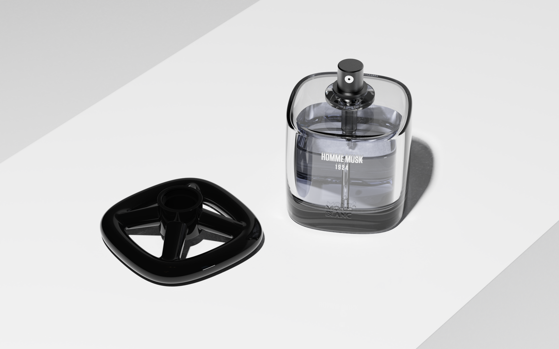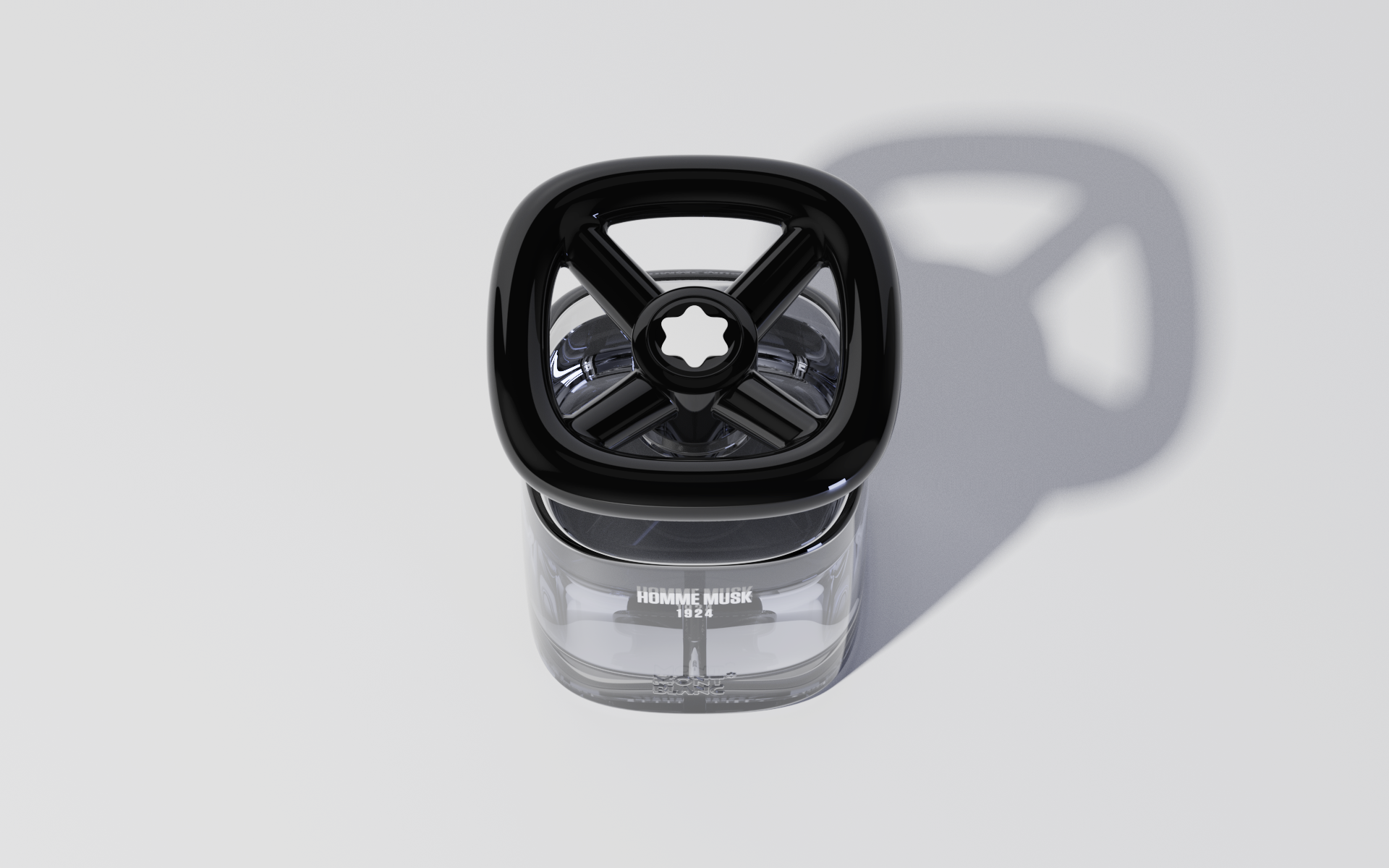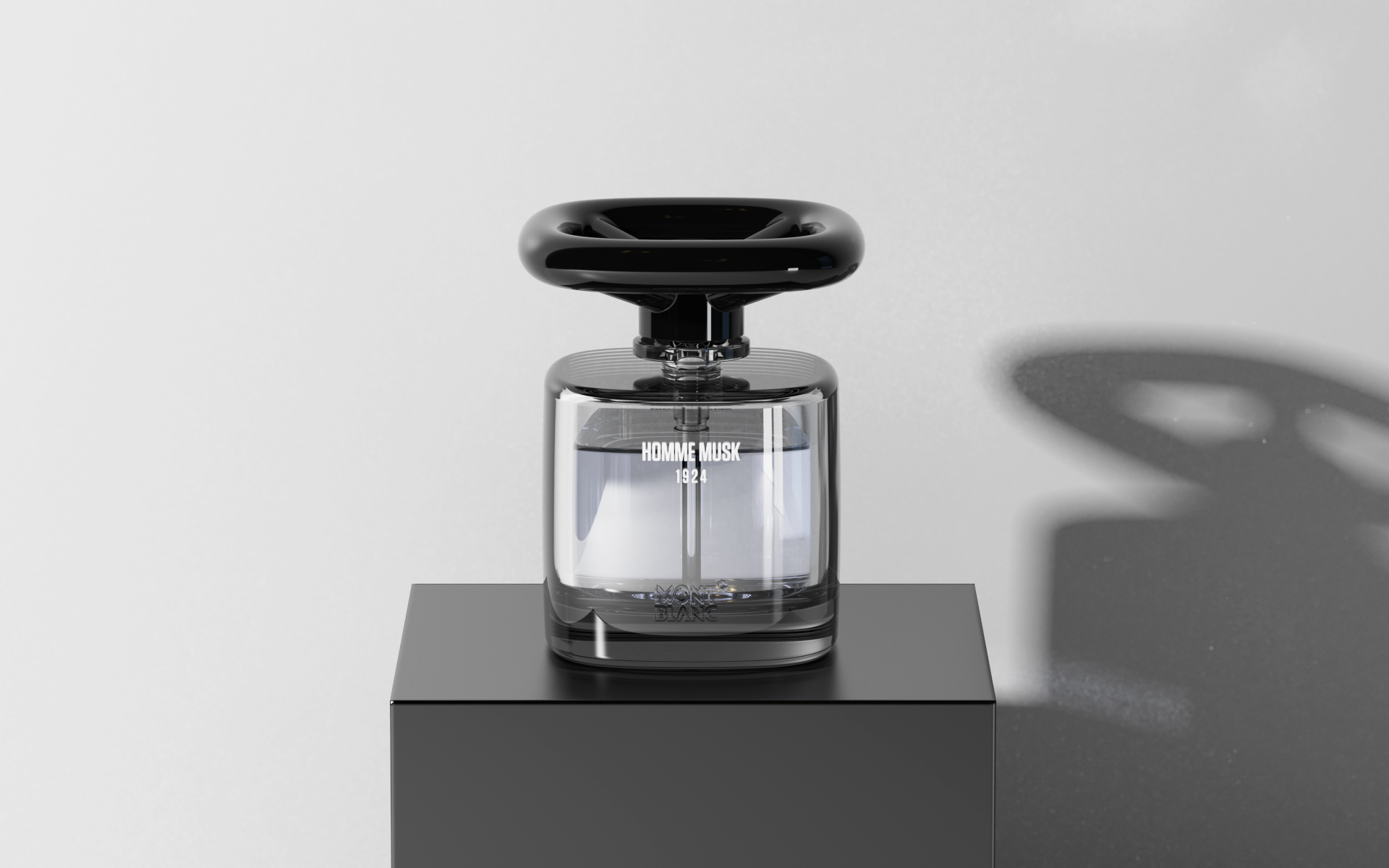 HOMME MUSK is a fragrance design concept inspired by the philosophy of craftsmanship and precision associated with Montblanc. Through architectural structure and restrained luxury, the design presents a refined interpretation of modern masculine elegance.
